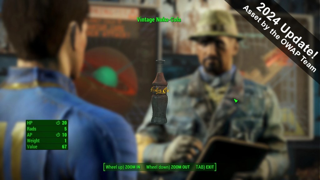 JViole, C3, and the OWAP team for the Classic and vintage Nuka Cola’s, the FO3 style TV, and the Fallout 3 style foot locker