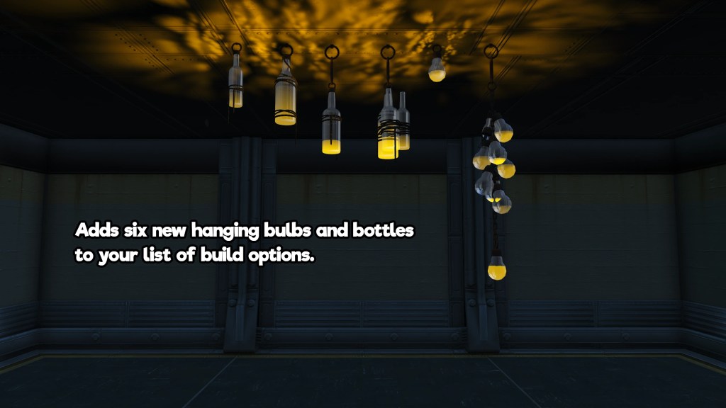 - Adds four new hanging bottles and two new hanging bulbs to your list of options.