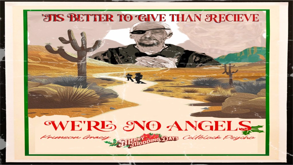 A Christmas themed quest mod for Fallout: New Vegas quest that creates a small hangout spot/custom location right across Sloan near the train tracks. The quest mod is directly inspired by its namesake Christmas film: We’re No Angels. The mod will have players interact with two escaped convicts and a “store owner,” (really a vagabond trader with a lack luster tent to his name)and decide whether to side with the convicts to rob the trader blind or go help the trader give “a Mojave Christmas” that the convicts will never forget.