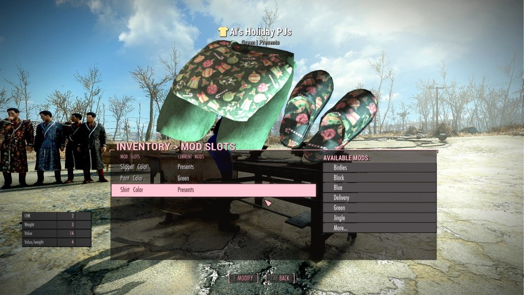 - Highly moddable, you can color the shirts, pants, robes, and slippers!