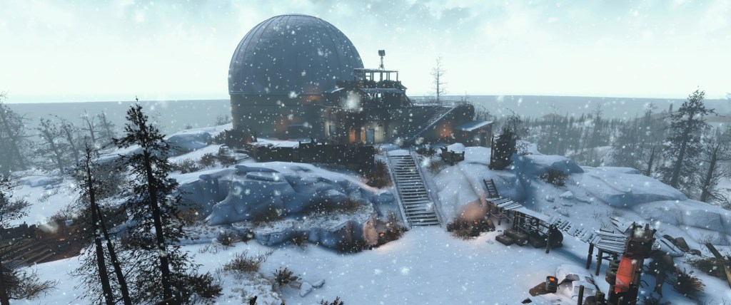 - Snow overlay models that fit over top of over 3,000 different game objects custom made in Blender, placed over 200,000 objects in the exterior world. This covers every roof, every rock, and every road with snow except for…