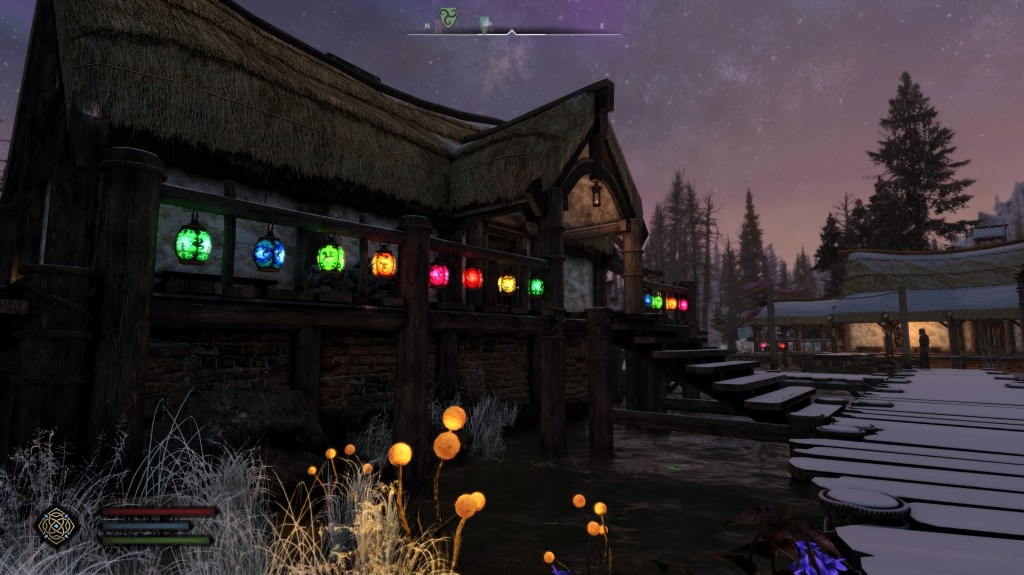 Legacy of the Dragonborn SSE has a floating tree in the entrance of the museum which you will need to remove with xEdit (very easy, there are tons of videos of how to do this online). I do have a version with reduced lanterns and additionally removed all the large trees in xEdit from all towns and villages to be able to use it throughout all seasons. I can share that version with anyone who wants it, although I’ll need to get permission first from manny. It is the version I am currently using for my playthrough.